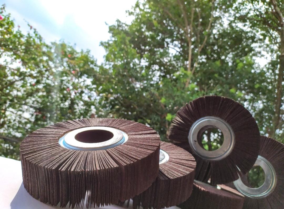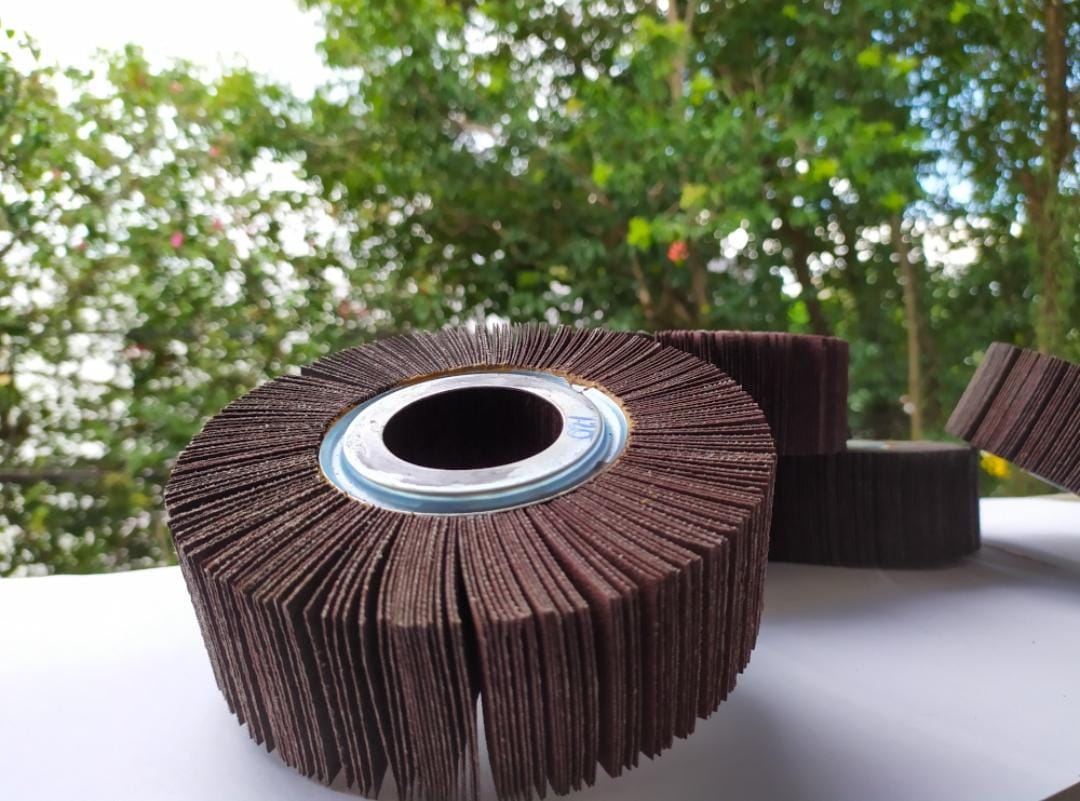 Rodas de lixa, PK ou polikontour são o mesmo produto. São fabricadas no grão óxido de alumínio marrom nos mais variados tamanhos e sua granulometria varia do grão P36 ao P400.